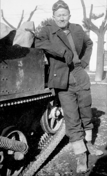 Photo: Corporal Walter “Red” Asseltine leans against a carrier in Holland in 1945 – Source: Ted Brown