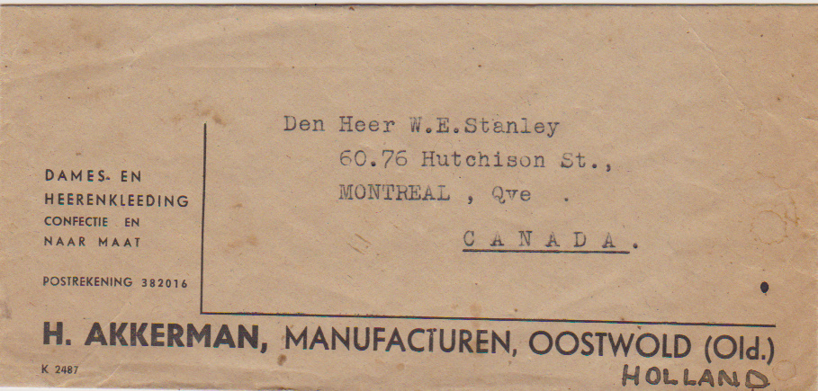 Terwijl wij ons met Walter Elliot Lee bezighouden ontvang ik een berichtje van Peter Akkerman. Hij heeft een ongeopende envelop gevonden, een niet verstuurde brief die door zijn vader is geschreven en gericht aan de militair die bij hen ingekwartierd is geweest. Op de envelop staat een adres in Canada: