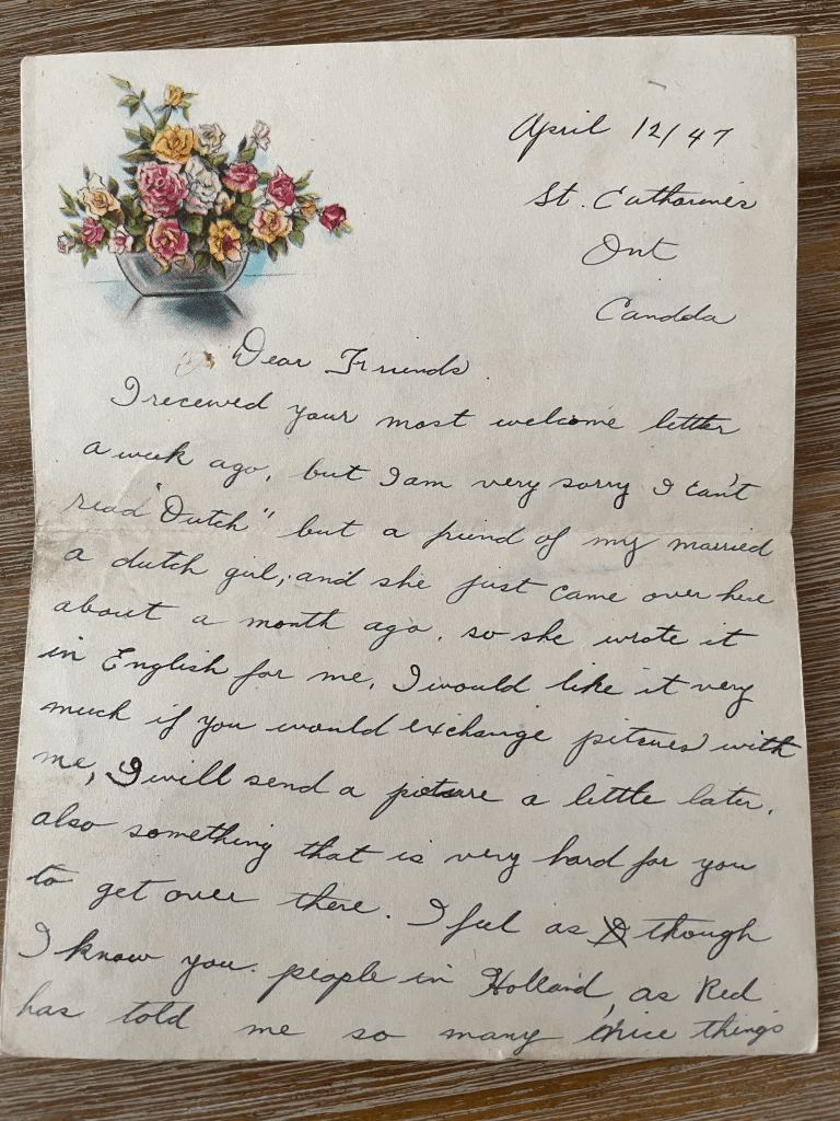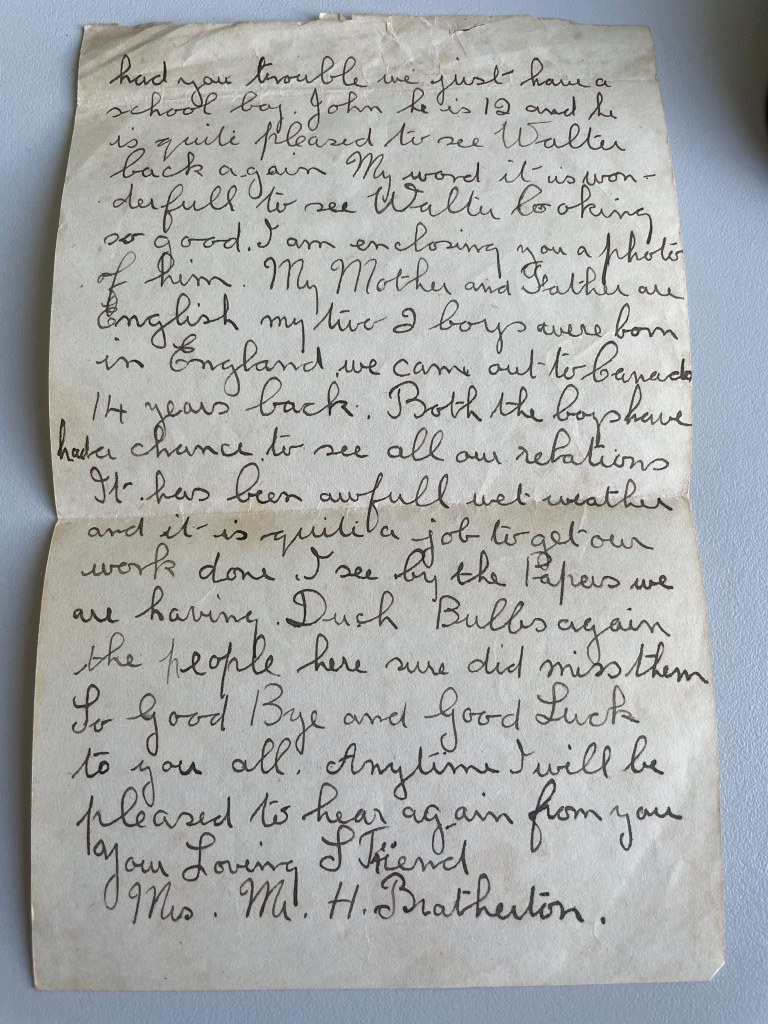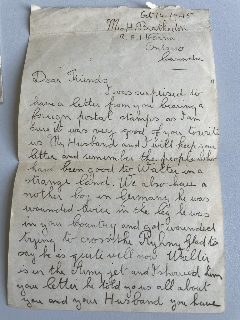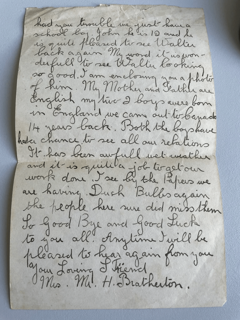 That afternoon in August 2021 when I found Mrs. Bratherton’s letter, I find more letters from Canada and again I sit still, and am stunned. Why did my mother never told me that she has been in contact with both Walter’s and “Red’s” families. I don’t understand.
