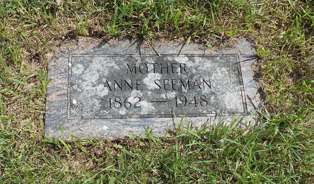 Anne Seeman, geboren Engeltje Hekman, overlijdt, 86 jaar oud, op 25 juli 1948 in Cogswell, Sargent County, North Dakota. Zij is begraven op Old Sargent Cemetery in Cogswell. Op haar grafsteen staat geschreven: MOTHER