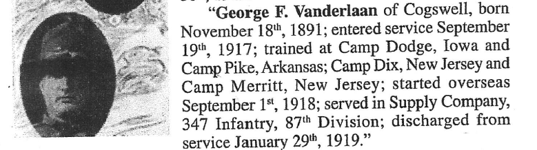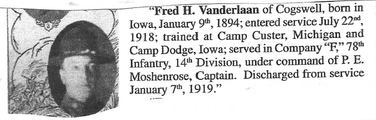 De Eerste Wereldoorlog breekt uit en hoewel die zich in Europa afspeelt moeten de jongens Vanderlaan en Seeman zich registreren voor het leger. Opvallend is dat de registraties plaatsvinden aan het einde van WWI, nl. in 1917. Dit zie ik niet alleen bij de Vanderlaans en Seemans maar ook in andere families. Een verklaring daarvoor zou kunnen zijn dat President Wilson lang heeft geaarzeld om aan WWI deel te nemen en ook voor wie hij partij zou kiezen.