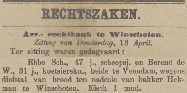Old Edsko has his “Winschoter Broodfabriek” (Bread Factory) at Langestraat 111 as an advertisement tells us. A few months before leaving for the United States he still is a baker. In an advertisement we can read that two persons have to appear at court ecause of having stolen bread from him.